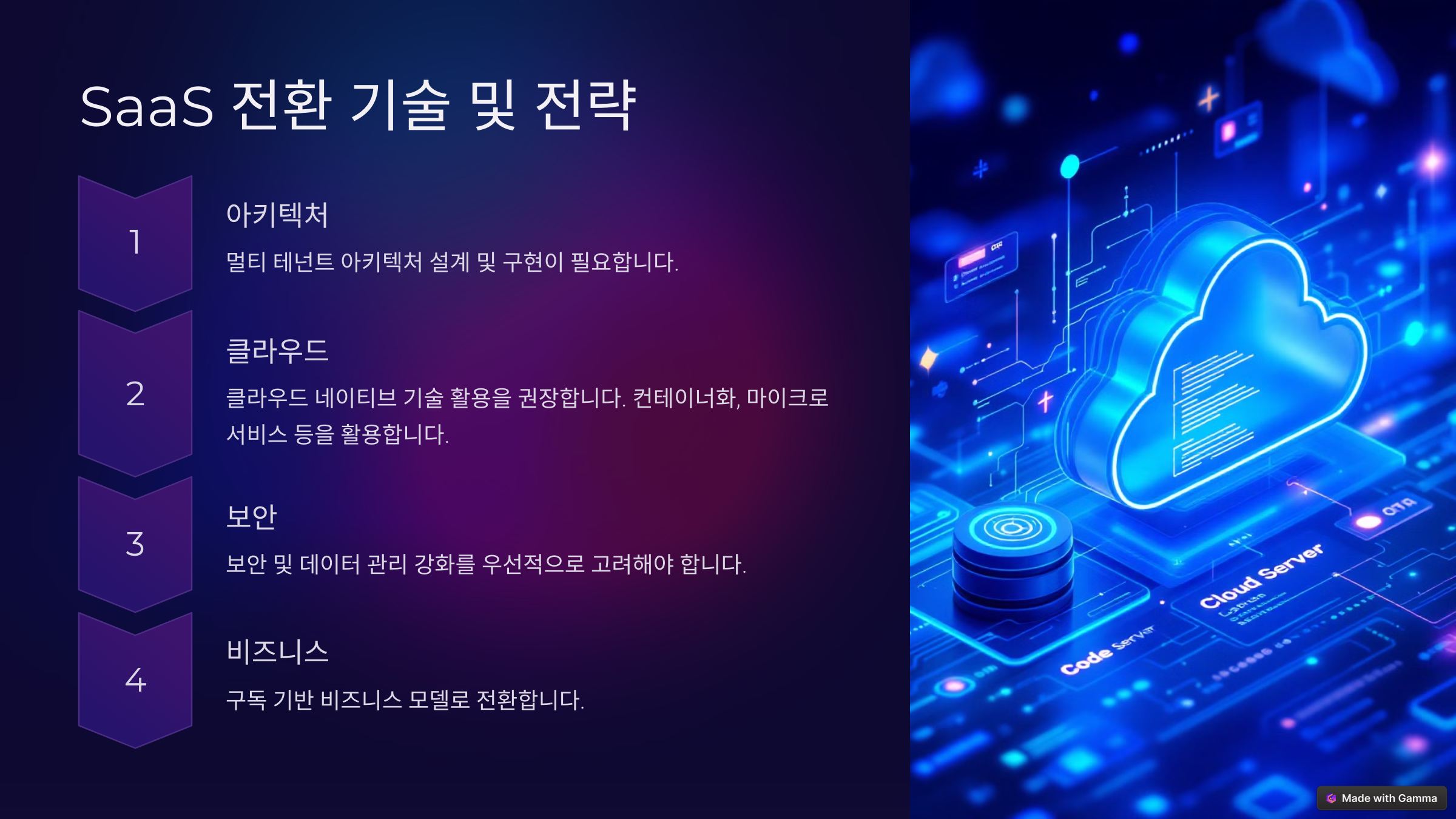 - "단순히 클라우드에 올리는 것"이 아니라, 구독 모델, 고객 확장성, 글로벌 진출 가능성 등을 강조해야 좋아.